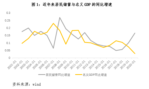 值得注意的是,2018年资管新规颁布后,国内居民储蓄增速并没有延续下降趋势,而是掉头上升。但是国内宏观经济并不支持这一变化,同期名义GDP增长率继续呈下降趋势。这与注册制试点以后股票市场持续牛市、基金销售空前火爆的金融形势同样也构成鲜明反差。相比较而言,最大的变化是居民投资理财环境。特别是资管新规以后,居民储蓄的投资渠道在规范中明显收缩。