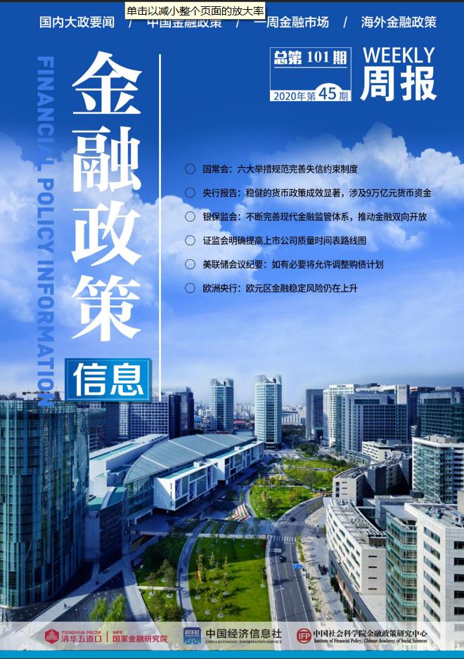 《金融政策信息》由清华大学国家金融研究院、新华社中国经济信息社、中国社会科学院金融政策研究中心联合制作。主要包括国内大政要闻、中国金融政策、地方金融政策、一周金融市场、海外金融政策等栏目。