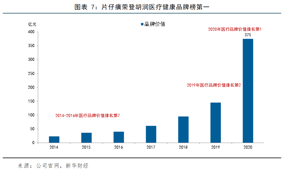 资料显示,片仔癀已连续六年获评“健康中国”肝胆用药第一品牌,估值居全球投行《全球千强药企报告》第49位。此外,片仔癀连续多年荣登胡润品牌榜,2020年成为最具价值医疗健康品牌;2020年,片仔癀以品牌价值566.96亿元居《2020中国最具品牌价值100强》第55位;2021年,片仔癀以品牌价值349.46亿元、品牌强度935连续三年在中华老字号品牌中蝉联第二。