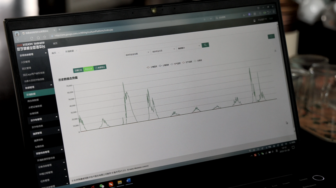 何建华也非常重视种植数据复盘。他在电脑上展示了数字种植管理平台,不仅有种植品类、种植面积等基础信息,也有设施设备的分布和实时状态,以及各个环节点的实时画面、传感器实时数据及回溯。“我们经常会做一些对比参考,这些数据对我们的管理很有帮助。”