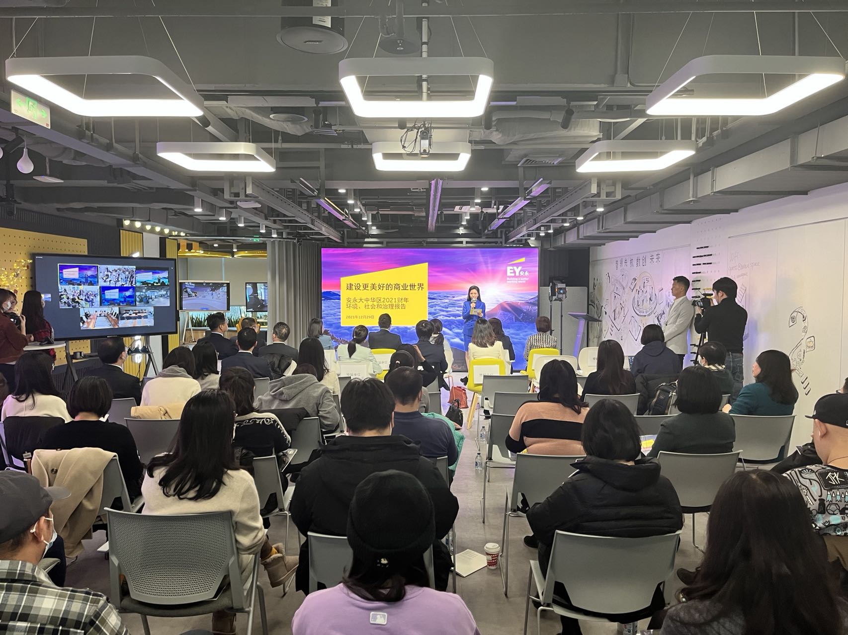 安永大中华区金融服务气候变化与可持续发展合伙人、亚太区金融服务可持续发展主管兼ESG管理委员会秘书长、ESG管理办公室负责人李菁介绍了本报告及安永大中华区在2021财年的ESG亮点绩效。